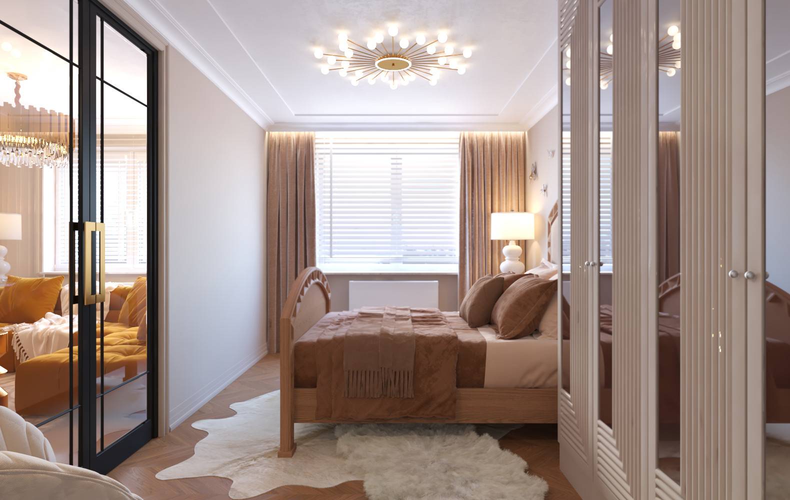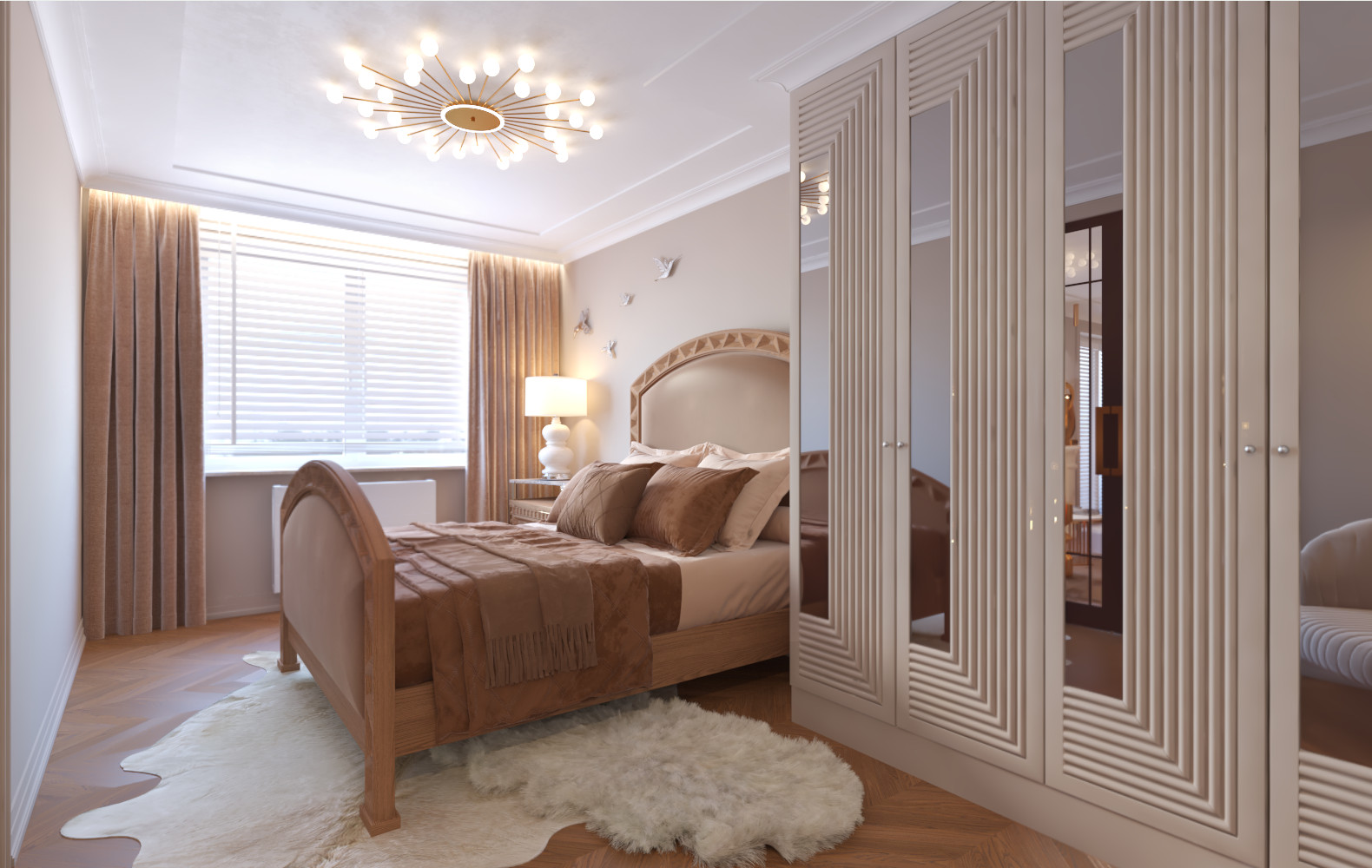 Każda z dwóch sypialni zaprojektowano z uwzględnieniem potrzeb klienta. Odpowiedzialność za pełne wykończenie i wyposażenie mieszkania spoczywa na firmie SaniWell. Dlatego w wykańczanych sypialniach zapewniono pełne umeblowanie, m.im.: szafy, łóżka, oświetlenie, zasłony w oknach, toaletkę wykonywaną na wymiar i lustro. Co więcej, usługa pod klucz “wchodzisz i mieszkasz” jest najbardziej kompletną i spersonalizowaną opcją na wykończenie mieszkania.