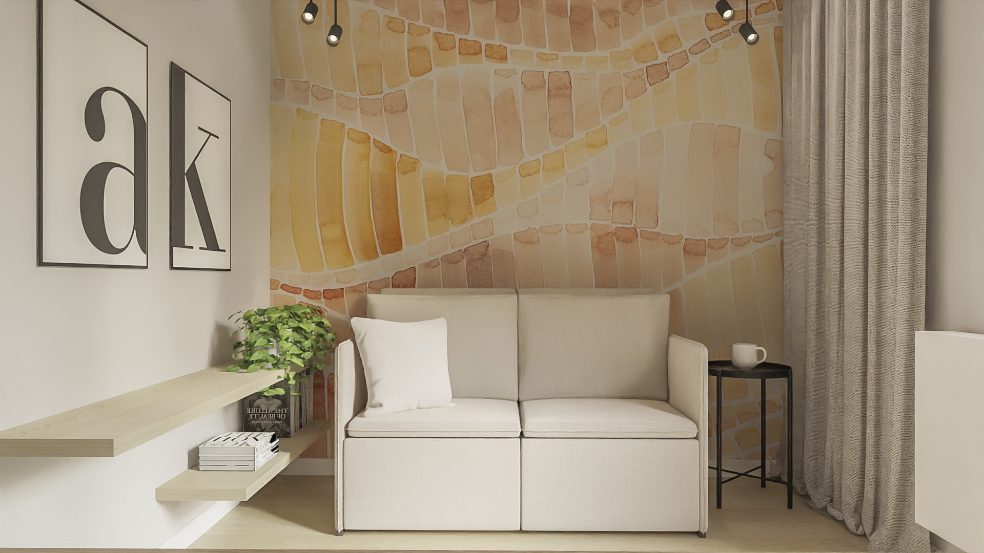 Mieszkanie wykańczane przez SaniWell to harmonijne połączenie stylów modern-retro i boho, które tworzą unikalny klimat pełen ciepła i naturalnych akcentów. Dominuje tu beżowa kolorystyka, wzbogacona tapetami inspirowanymi przyrodą i motywami morskimi, co nadaje wnętrzu spokojny, relaksujący charakter. W łazience zaprojektowano zarówno designerską wannę, jak i prysznic, tworząc przestrzeń idealną do codziennego odpoczynku.
