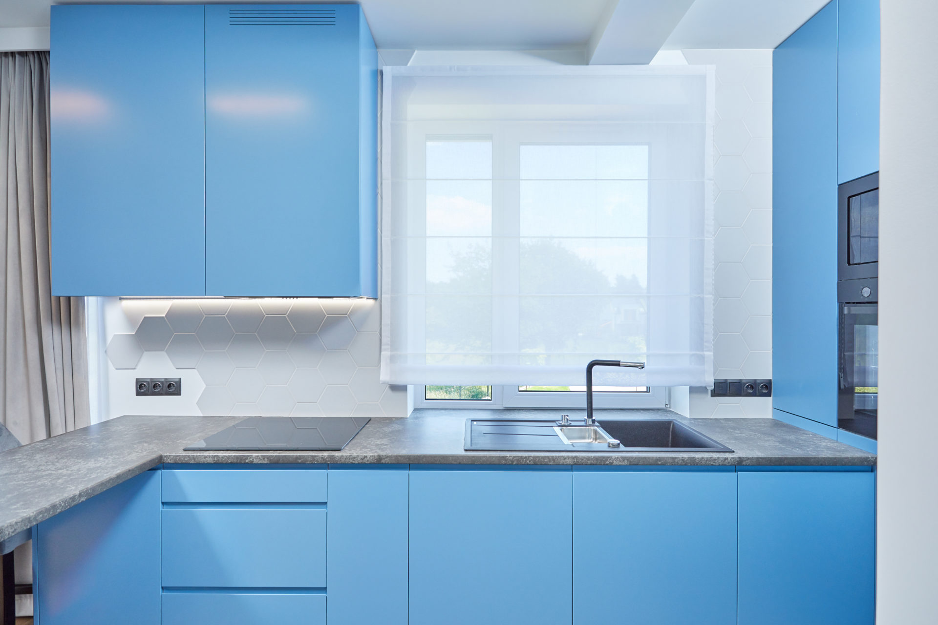 Ergonomiczna i przemyślana kuchnia może sprawić, że codziennie przygotowywania posiłków stanie się naszą pasją. Właściwie zaplanowana przestrzeń w kuchni wiąże się nie tylko z miejscem do gotowania, ale odpowiednią wysokością zabudowy kuchennej wykonanej na wymiar czy dużej ilości łatwo dostępnych szafek, które ułatwią przechowywanie produktów. Warto zwrócić uwagę na oryginalny wzór płytek kuchennych, które w połączeniu z lekką szarością frontów kuchennych prezentują się cudownie.