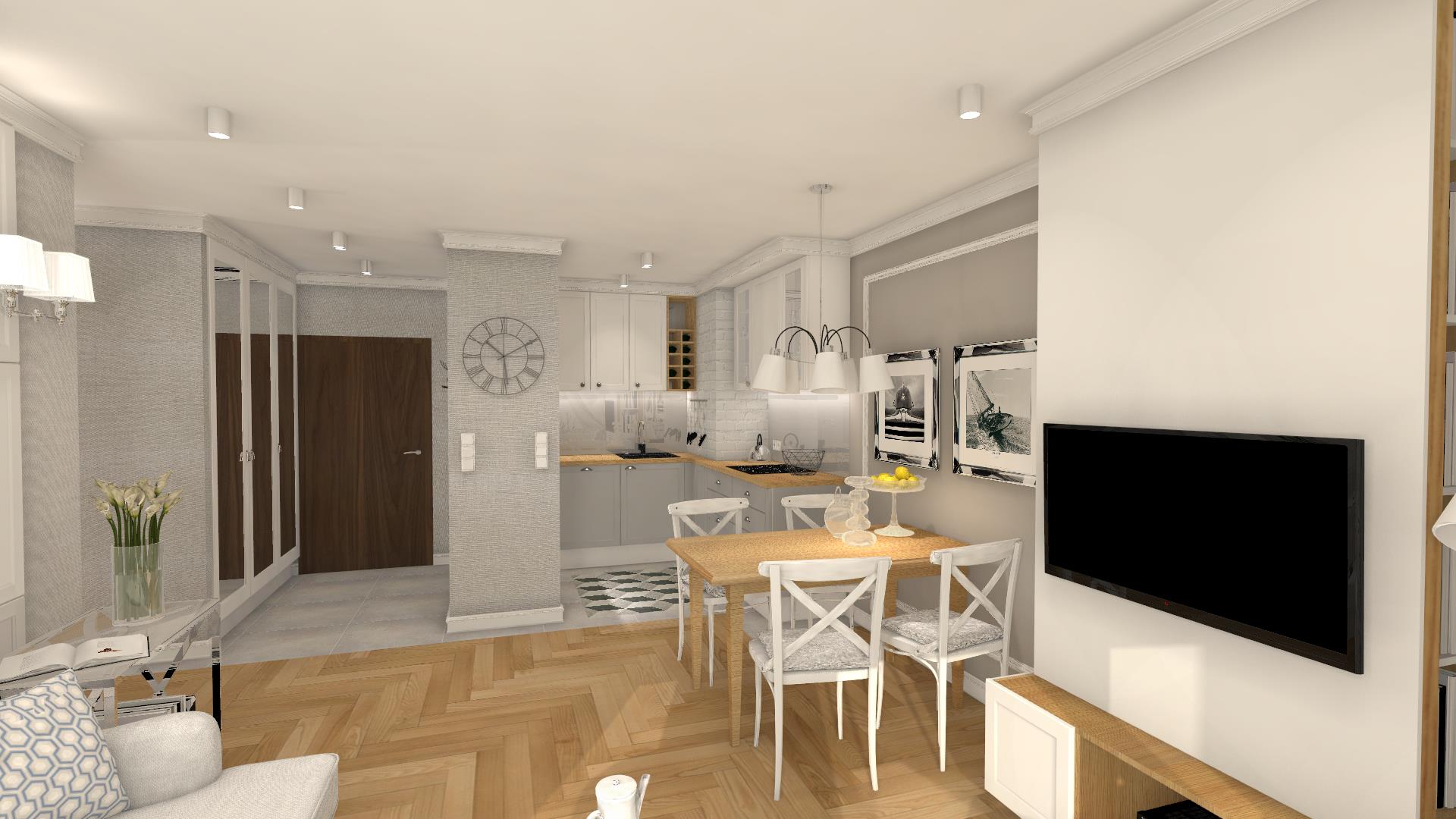 In 2016, we started working on a new project – an apartment at ul. Solna in Krakow. The interior finishing process, as always, begins with the preparation of the project and ends with the cleaning works of the finished and already furnished apartment.