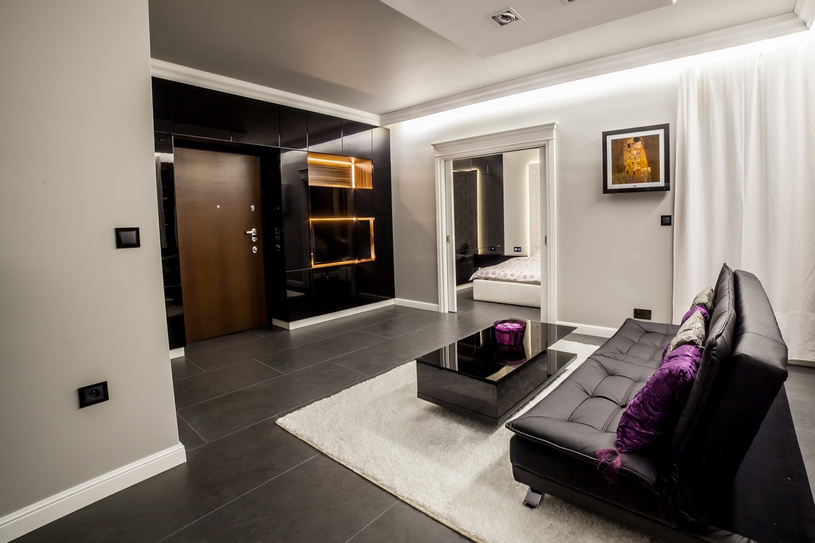 Our client’s apartment has been designed and finished in a modern and bold style. It is an intriguing space for a demanding user. At SaniWell, we approach each project in an individualized manner and that is why the finished interiors are unique. What’s more, the “walk in and live” service is the most complete and personalized turnkey option on the design and construction market.