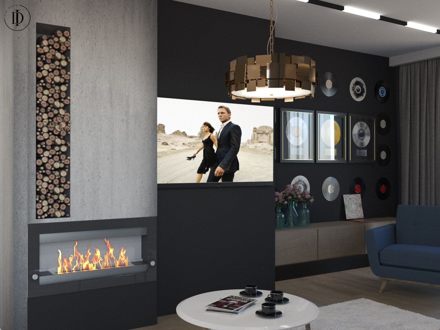 When designing and then finishing the turnkey apartment, attention was paid to the smallest detail, which made this interior unique and beautiful. Stylish herringbone floor, decorative wall finish, prestigious fireplace and glass doors separating the living room from the bedroom. That is why each of the selected elements of equipment and finishing materials makes the apartment perceived as a luxurious and elegant interior. It is worth paying attention to the decorative finish of the wardrobe in the hall, which is decorated with graphics.