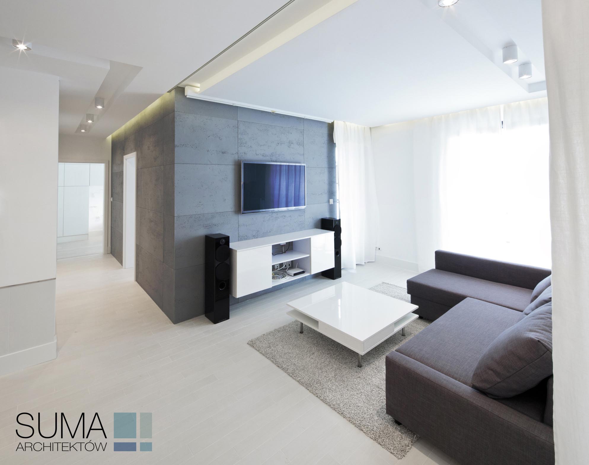 Our next implementation in the “you enter and live” standard is a three-room apartment with an area of 72 sq m located in the Live in the City investment of the developer Henniger Investment. The property consists of two bedrooms, a living room with a kitchenette, a bathroom and a utility room. The designed interior refers to the classic, subdued color palette. The dominant gray and white was broken with shades of blue and green in the bedrooms. Designing and making a custom-made wardrobe in the hall, bedrooms and bathroom facilitates storage and keeping order. Therefore, the arrangement of the utility room, in which racks with lighting were designed, deserves special attention. The bathroom looks fantastic. Combined tile patterns create an original and beautiful effect.