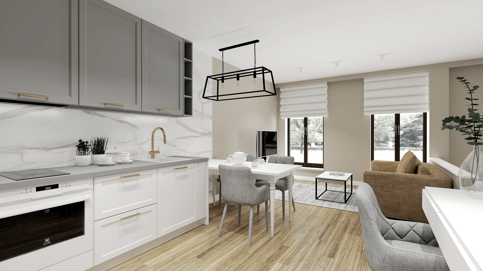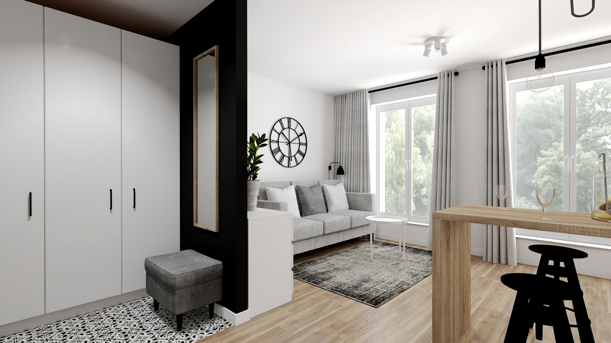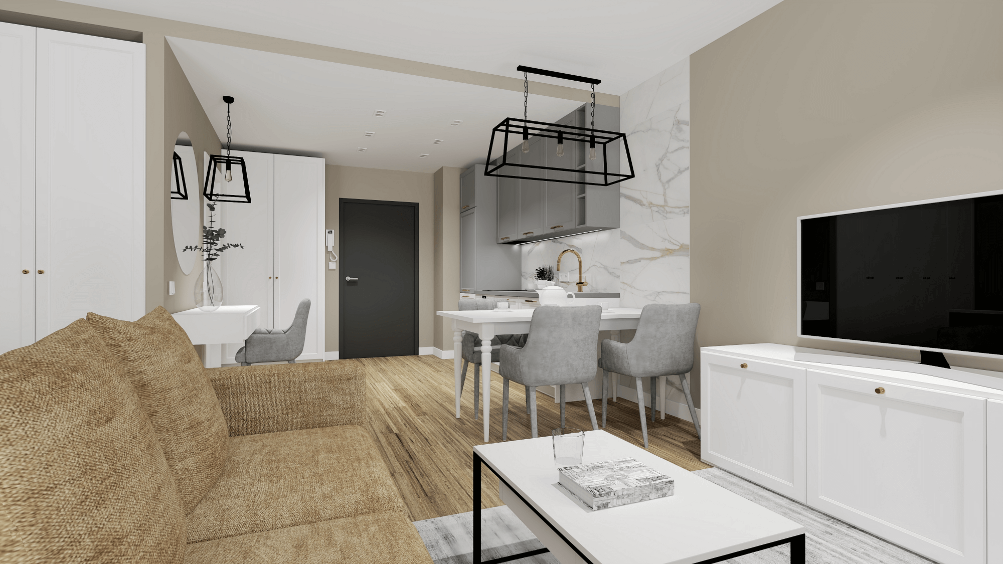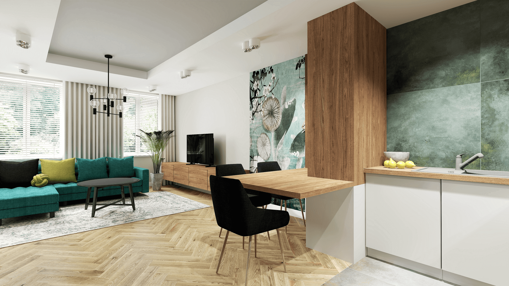 Apartments in the very center of Krakow are an excellent and promising investment. The proximity of old tenement houses, business centers and academic complexes translates into the attractiveness of the space, increasing the value of the property. Therefore, taking into account the prestige of the investment, we have prepared four finishing proposals for specific apartments offered by the developer. It is worth noting that the presented designs are a concept of apartment development. Moreover, at SaniWell, each implementation is focused on the individual needs of the investor.