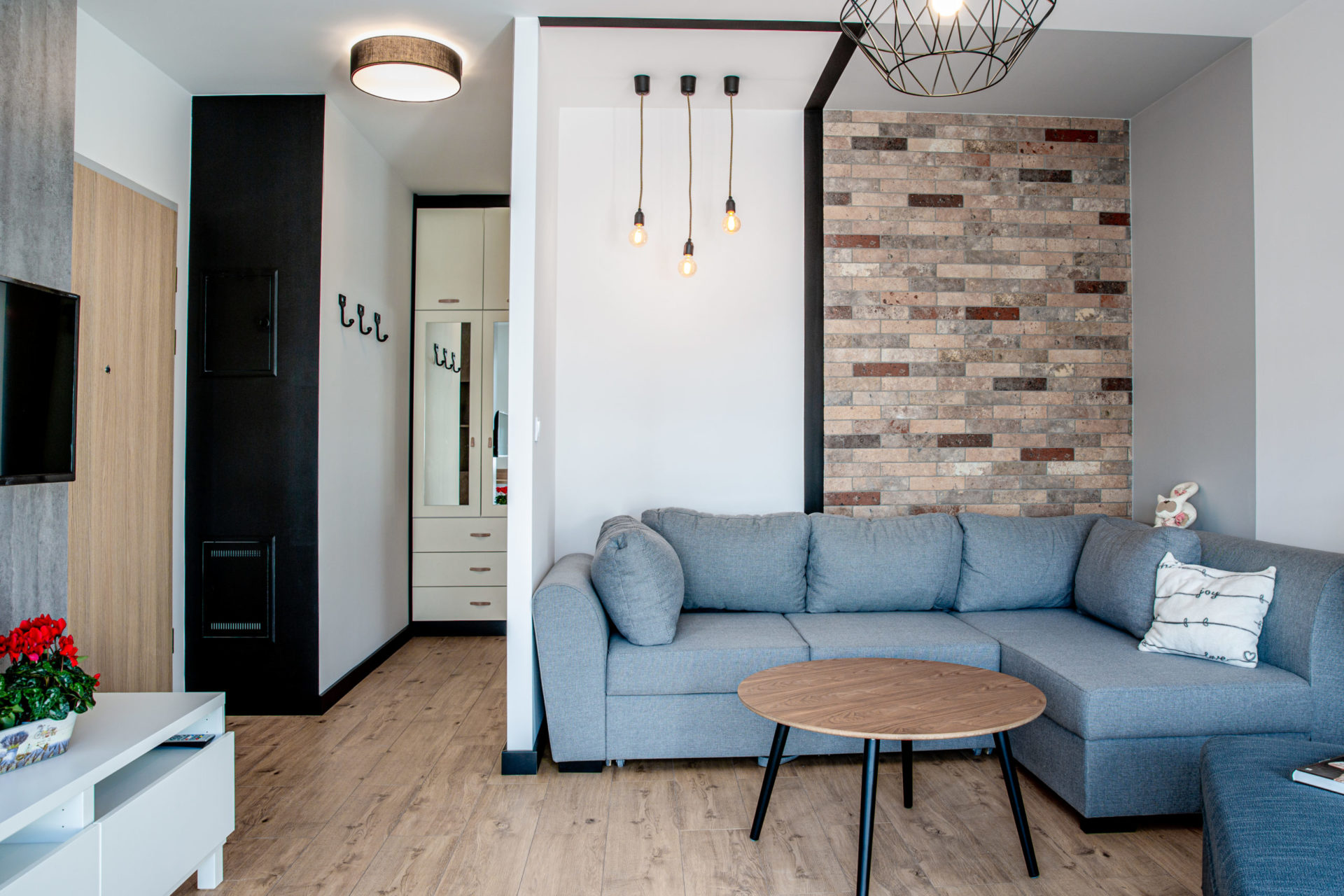 The smallest apartment we have realized so far had 26 sq m. It was also a challenge for the architect to fit everything in this small area and make it look good. The project was carried out very well. It is a perfect example of the fact that even the smallest apartment must be designed in advance.