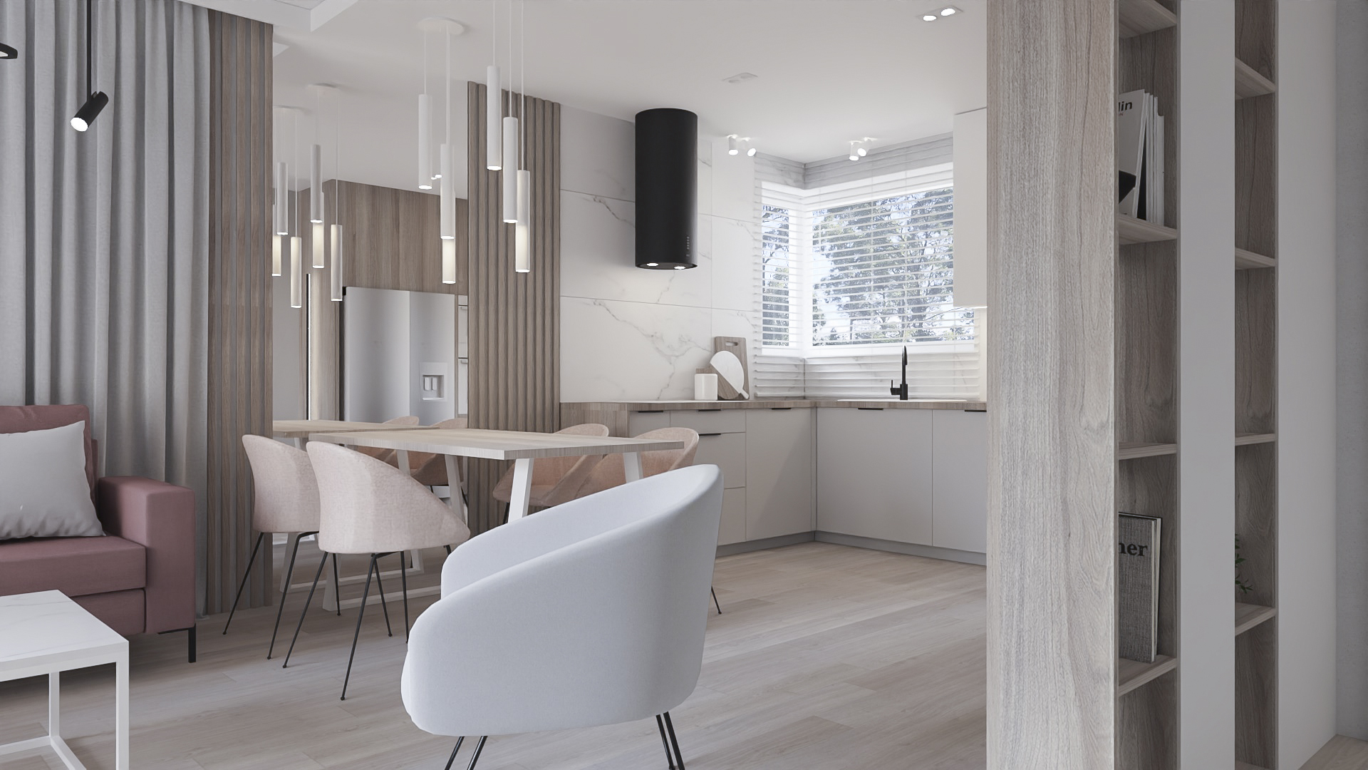 The turnkey designed and furnished apartment is located in the dynamically developing Wzgórza Krzesławickie district at Morcinka Street in Krakow. This beautiful, light and cozy interior is a combination of delicate colors, timeless, user-oriented design and practical solutions.