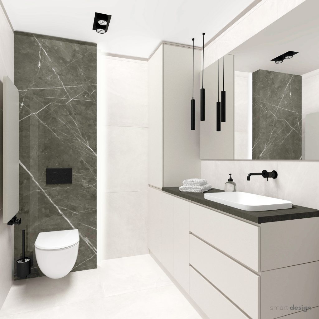 In the presented apartment, we have used large-format quartz sinters, a special vinyl floor on a cork substrate, a burnt graphite top, furniture in natural veneer and varnish. We have combined air conditioning, lighting hidden in the ceiling and interior heating into one coherent smart home system controlled by Grenton. All used solutions makes the apartment one of the most effective and, at the same time, the most expensive ones we have made.