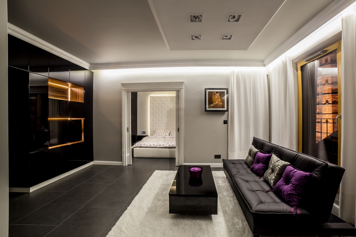 Mieszkania urządzone w stylu glamour to wnętrze pełne luksusu, elegancji i szyku. Częstym elementem wyposażenia, które możemy spotkać w takich mieszkaniach, są tapicerowane meble. Mogą być to pikowane sofy, fotele z podnóżkami czy łóżka o szerokich i ozdobnych zagłówkach. Jednak w pierwszej kolejności istotne jest zaplanowanie układu całego mieszkania. Co więcej, w przypadku wnętrz glamour pełnych dekoracji, jest to bardzo ważne, aby nie przesadzić z ilością wyposażenia i ozdób. Kluczowa jest paleta kolorystyczna, która najczęściej zdominowana jest przez fiolet, róż, butelkową zieleń i intensywną granatową barwę.