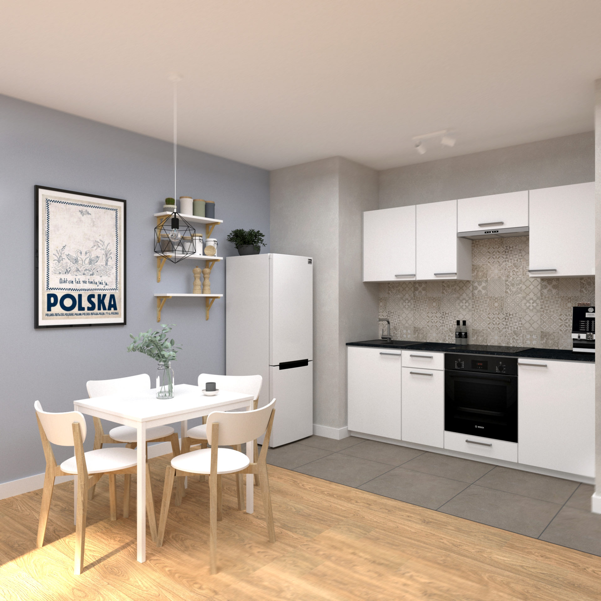 Pakiet Inwestycyjny zakłada nie tylko przeprowadzenie prac wykończeniowych i umeblowanie łazienki. W cenie uwzględnione jest wykończenie kuchni, salonu, sypialni i przedpokoju. Pakiet zakłada również pełne urządzenie mieszkania, w tym zakup i montaż AGD, oświetlenia, dekoracji, dobór i zakup zasłon i wyposażenie kuchni w naczynia, akcesoria i zastawę stołową. Mieszkanie wykończone pod klucz w oparciu o Pakiet Inwestycyjny jest mieszkaniem w pełni gotowym dla przyszłych najemców. W cenie uwzględnione są m.in.: szafy i regały, łóżko z materacem i szafki nocne, stolik kawowy i stół jadalniany z krzesłami, rozkładana sofa i regał RTV. Ponadto zabudowa kuchenna wraz z pełnym wyposażeniem, w które wchodzi lodówka, zabudowany piekarnik z płytą grzewczą, zlewozmywak, baterię kuchenną, okap i zmywarkę.