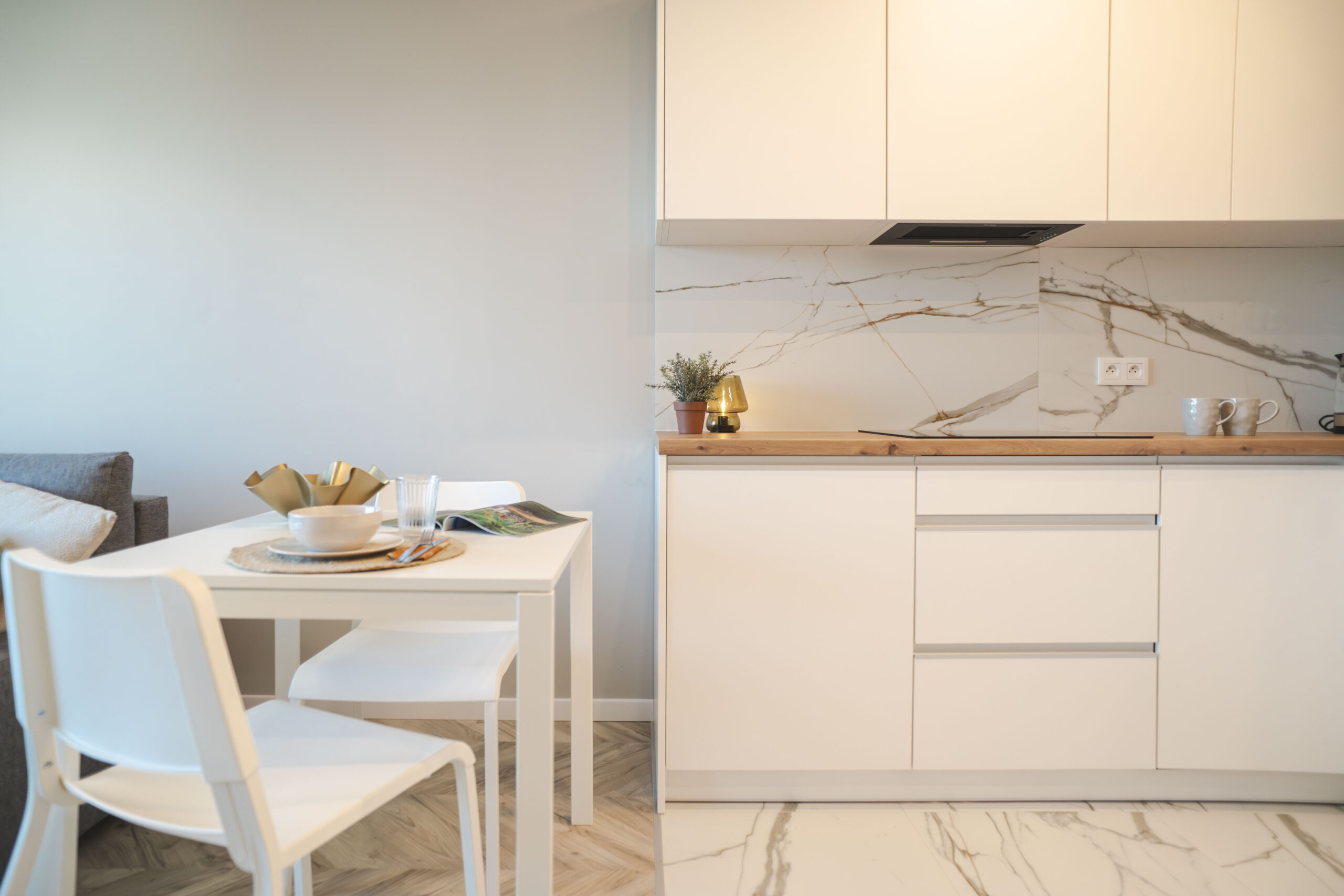 Inwestor Global Apartments decydując się na współpracę z SaniWell, otrzymał kompleksowe wykończenie apartamentów pod wynajem, które wyróżnia się dbałością o detal. Dzięki Pakietowi Inwestycyjnemu, przeznaczonemu specjalnie dla klientów, którzy planują wynajem swoich nieruchomości, cała realizacja jest dopracowana pod kątem funkcjonalności oraz estetyki, co przyciąga najemców. SaniWell przeprowadza całość prac wykończeniowych, dzięki czemu właściciele nie muszą martwić się o zakup materiałów, wybór mebli czy wykonanie prac instalacyjnych – wszystko jest w rękach profesjonalistów.
