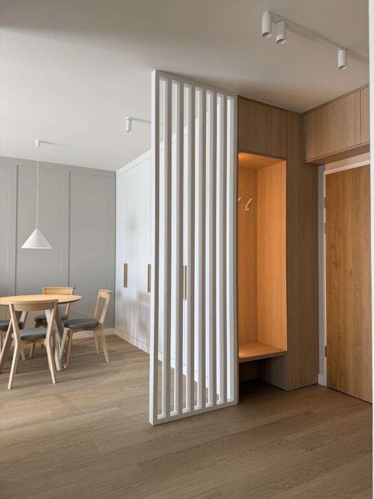 W prezentowanej realizacji postawiliśmy na ciepłe, naturalne wnętrze, które odpowiada aktualnym