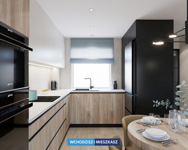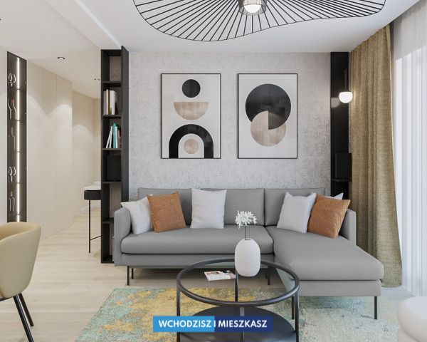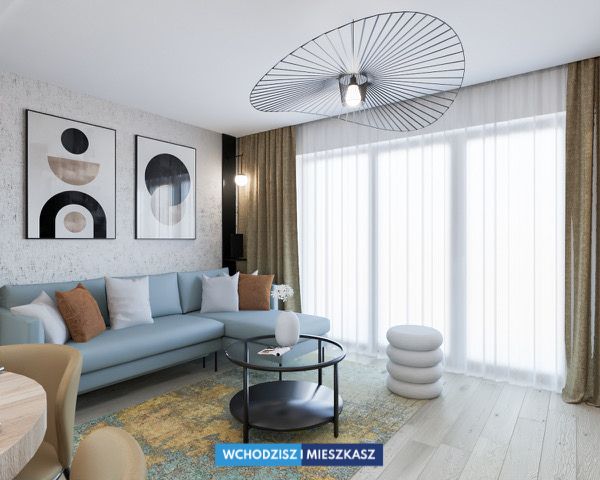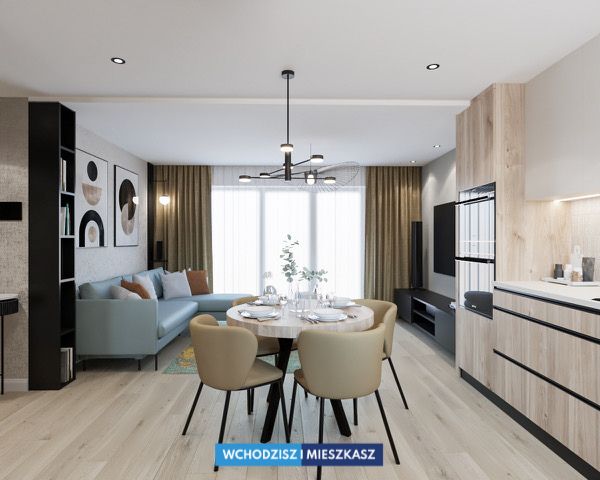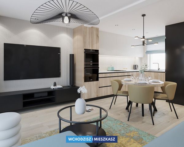Przestronny salon jest sercem domu, gdzie dominuje jasne drewno i subtelne odcienie beżu. Wygodne meble, eleganckie dodatki i duże okna sprawiają, że przestrzeń jest nie tylko estetyczna, ale również przyjazna dla domowników.