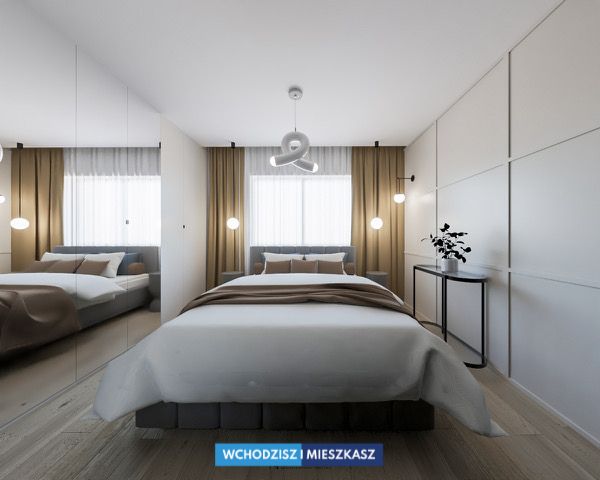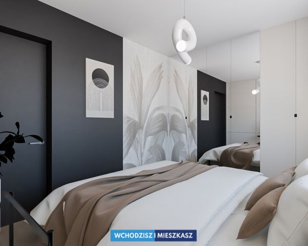 Sypialnia to miejsce relaksu, w którym królują ciepłe odcienie brązu i czerni. Miękkie tkaniny, delikatne oświetlenie i starannie dobrane meble tworzą atmosferę sprzyjającą odpoczynkowi.