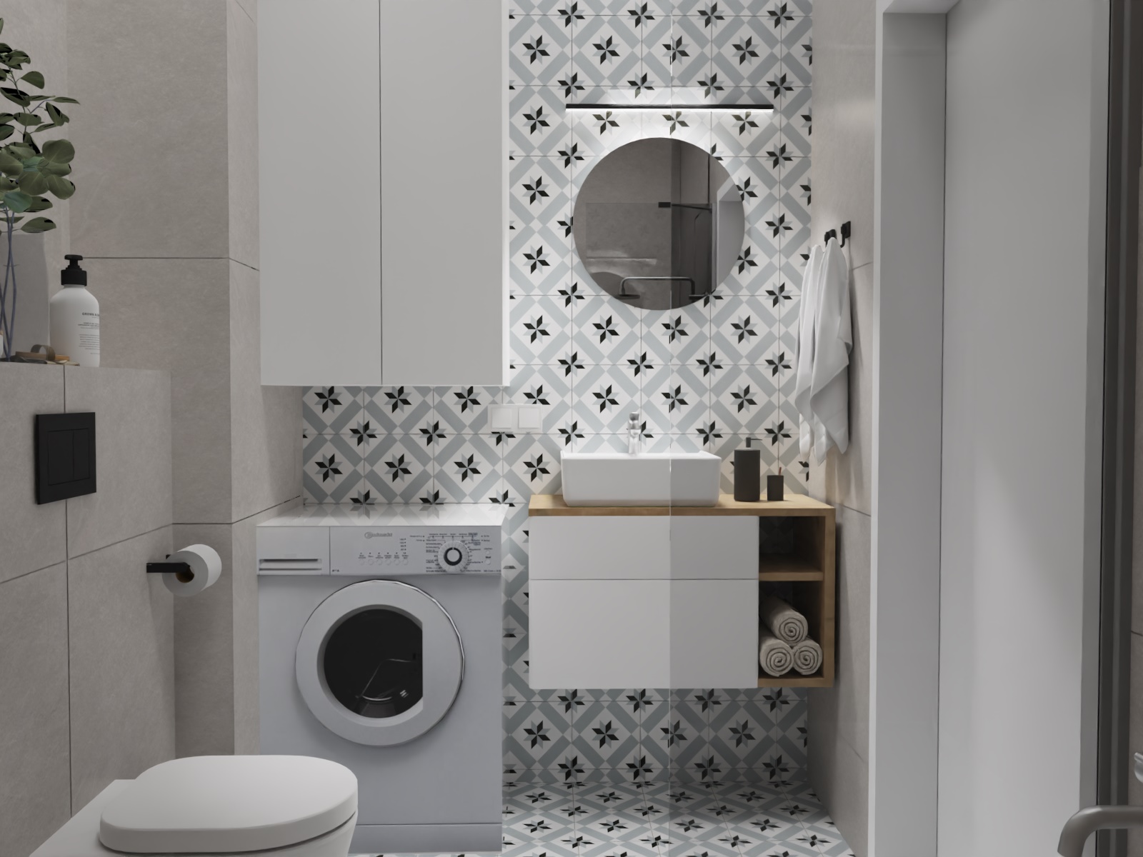 - praktyczna szafka z umywalką,